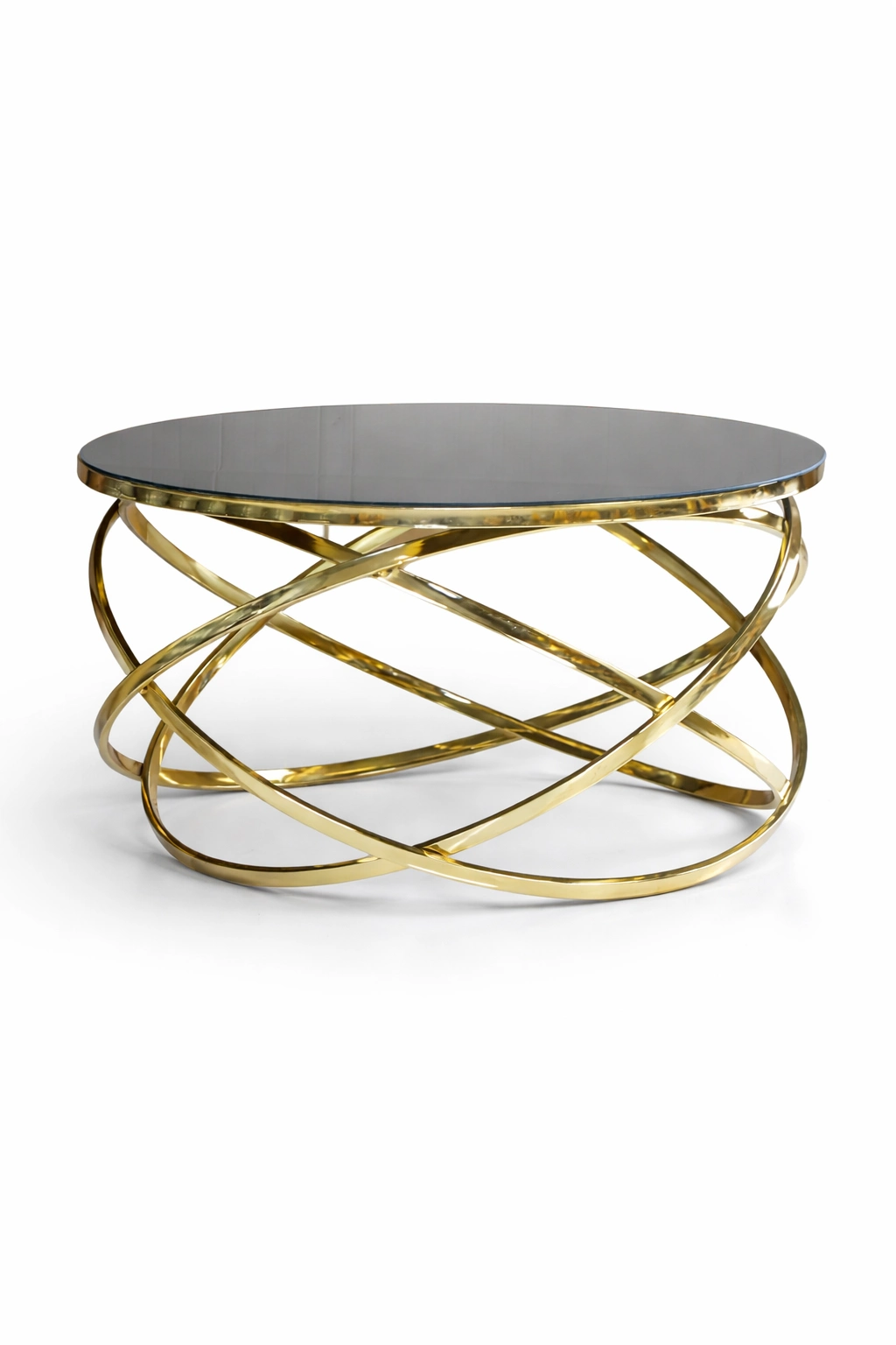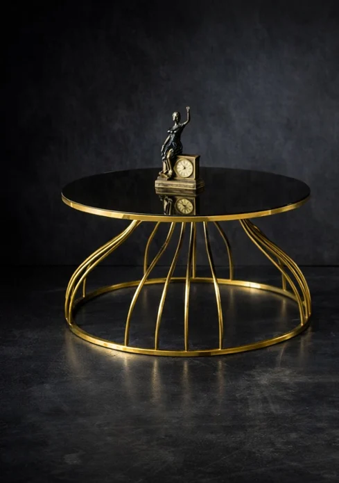 Şelale Yuvarlak Orta Sehpa – Metal Ayaklı Siyah Cam Tabla