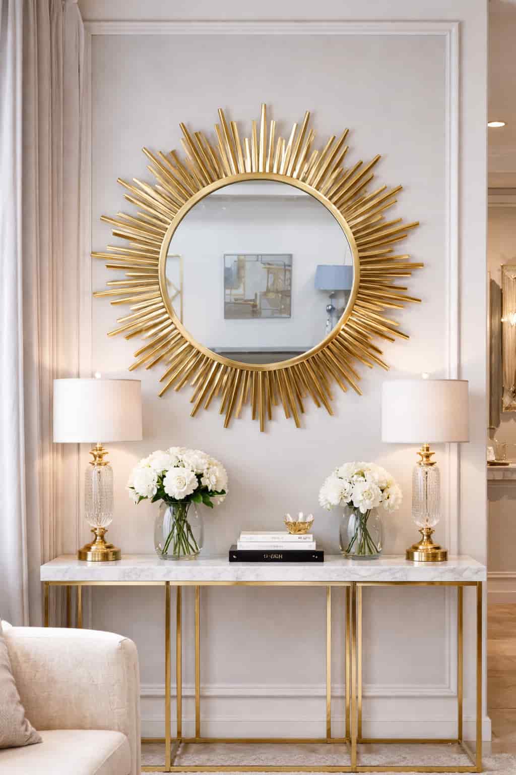 Güneş Ayna 95 cm – Gold Metal Sunburst Duvar Aynası