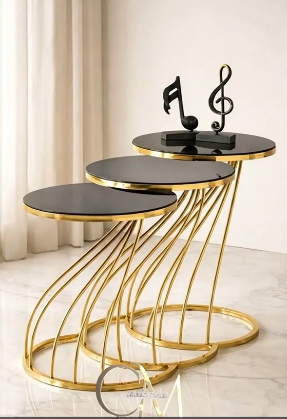 Kobra Model Yuvarlak Cam Zigon Sehpa Seti – Metal Ayaklı